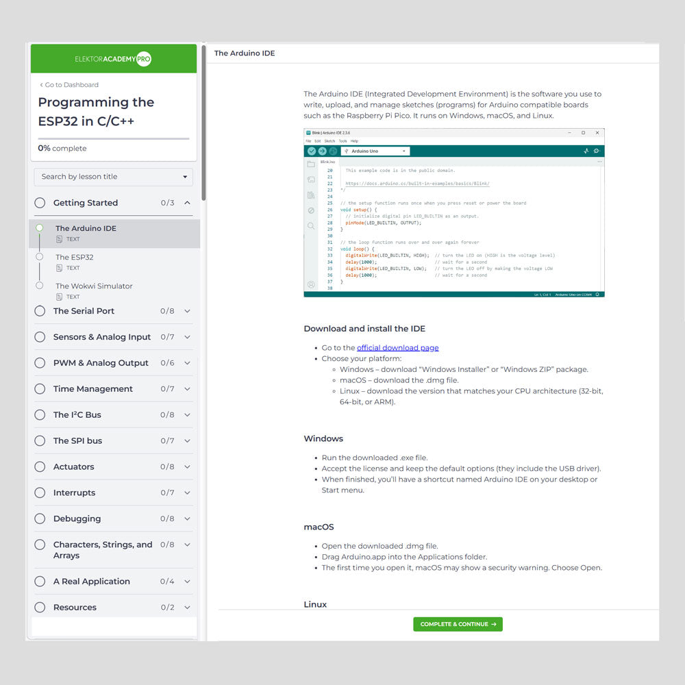 - Access to the full course on the Elektor Academy Pro Learning Platform