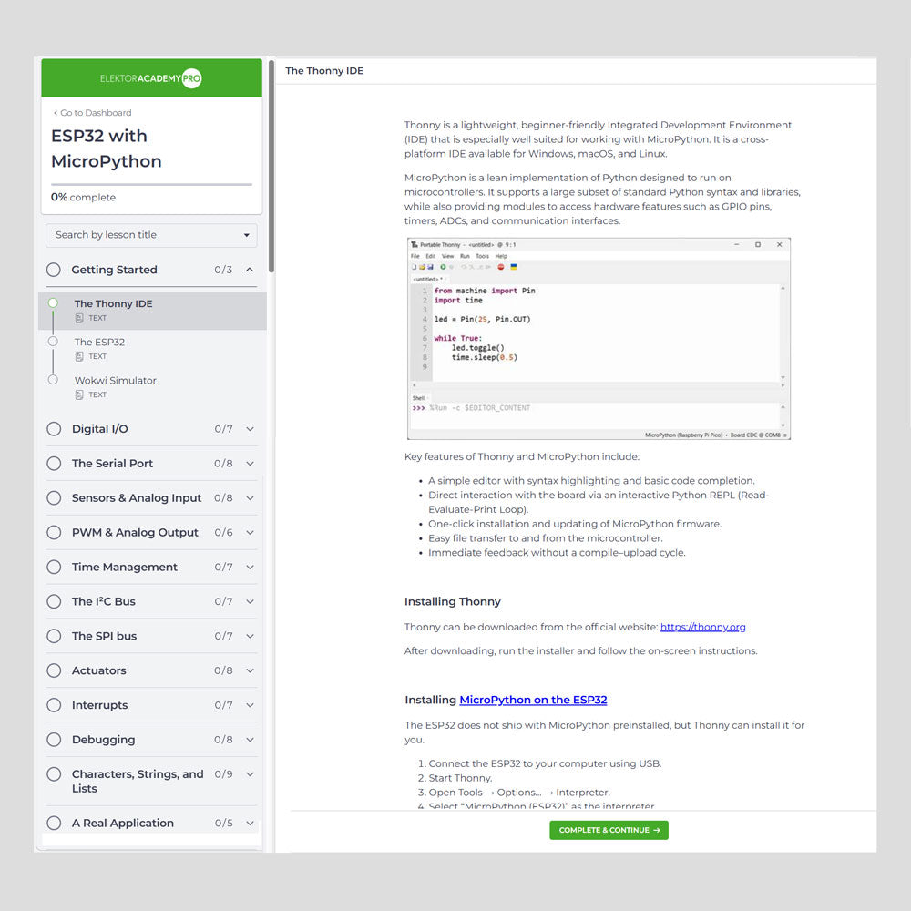 - Access to the full course on the Elektor Academy Pro Learning Platform
